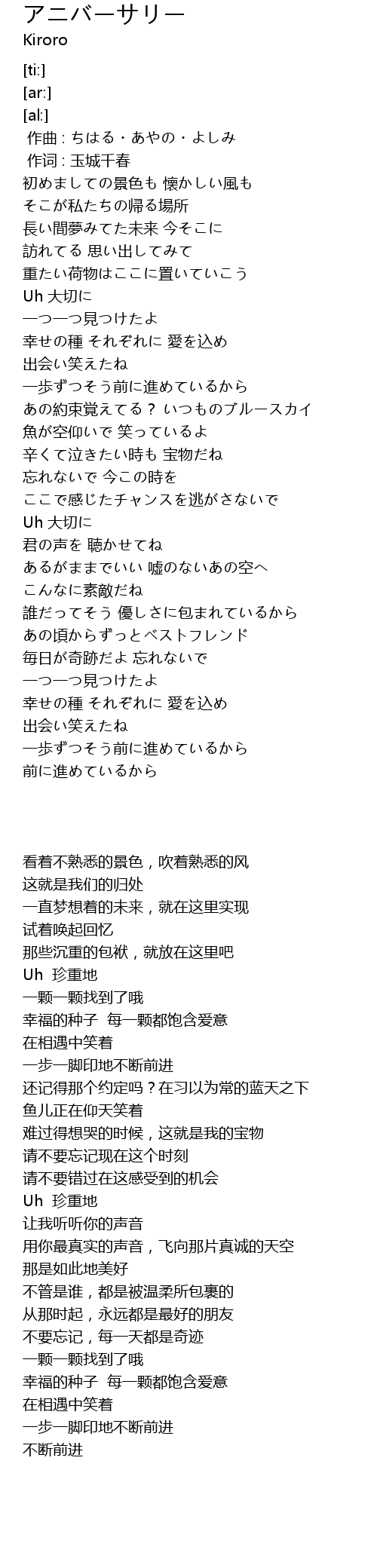 | [00:01.000] | 作词 : 玉城千春 |