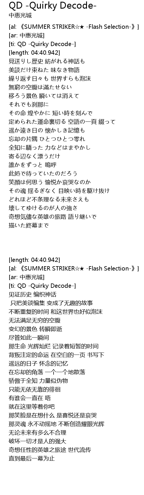 | [03:51.509] | 奇想気儘な英雄の旅路 語り継いで |