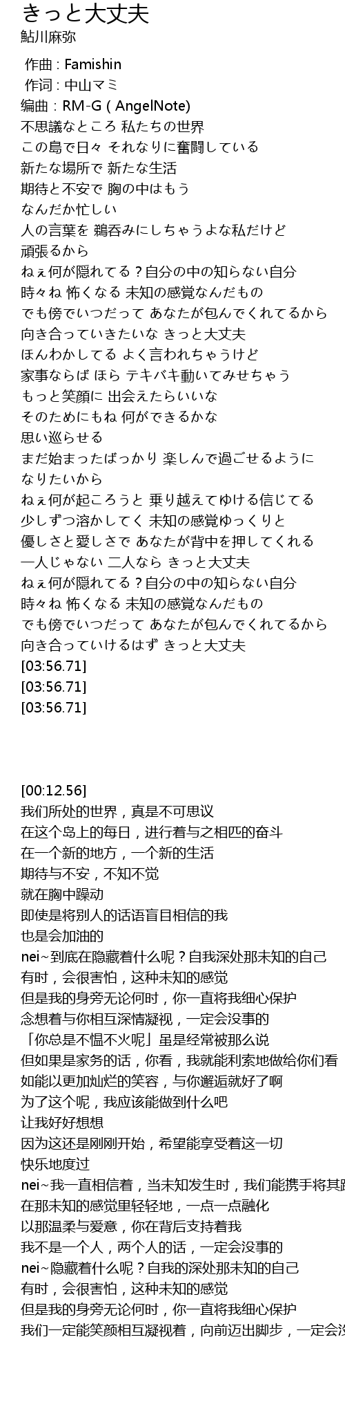 | [03:33.99] | 向き合っていけるはず きっと大丈夫 |