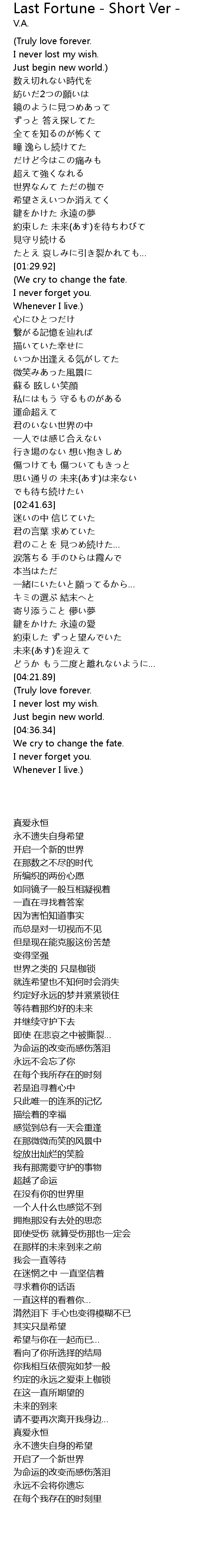 | Song | Last Fortune - Short Ver - |