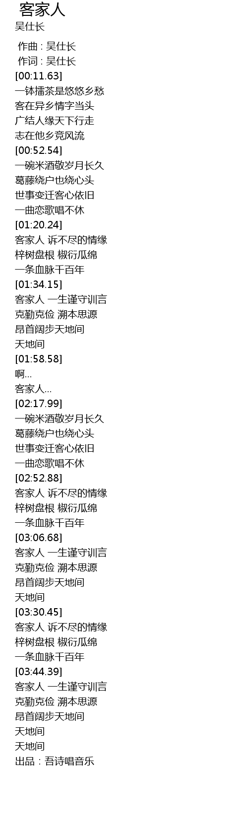 | [04:10.36] | 出品:吾诗唱音乐 |