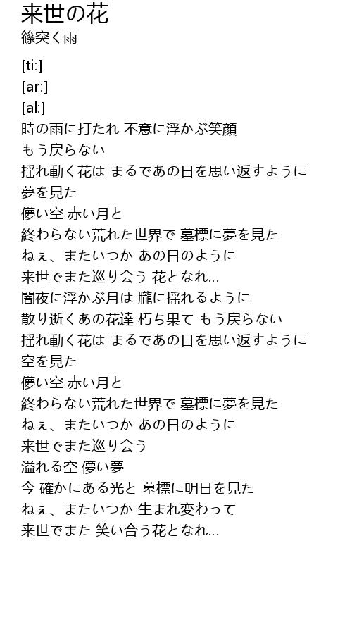 | [03:00.44] | 来世でまた 笑い合う花となれ… |