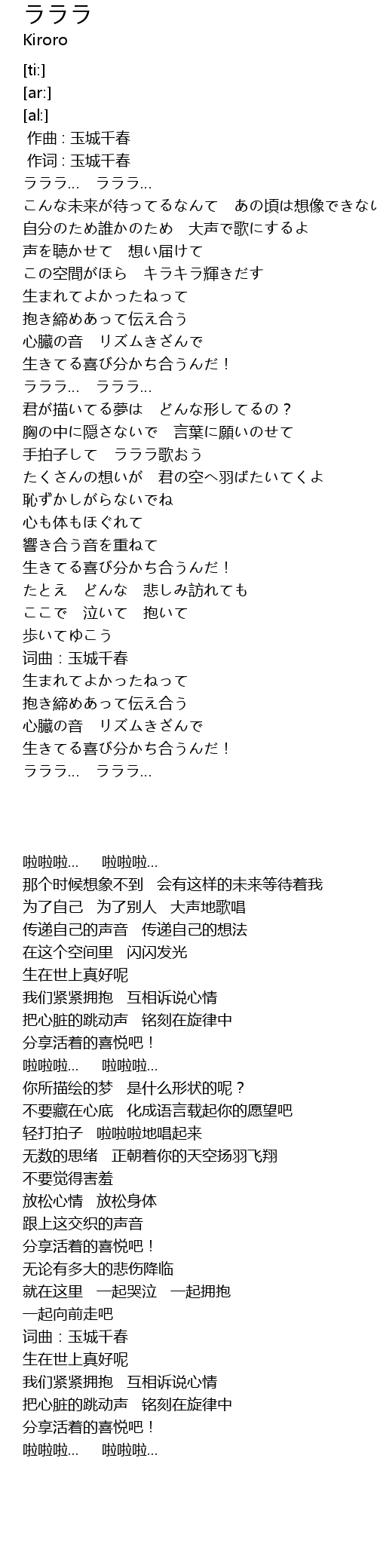 | [00:01.61] | ラララ… ラララ… |