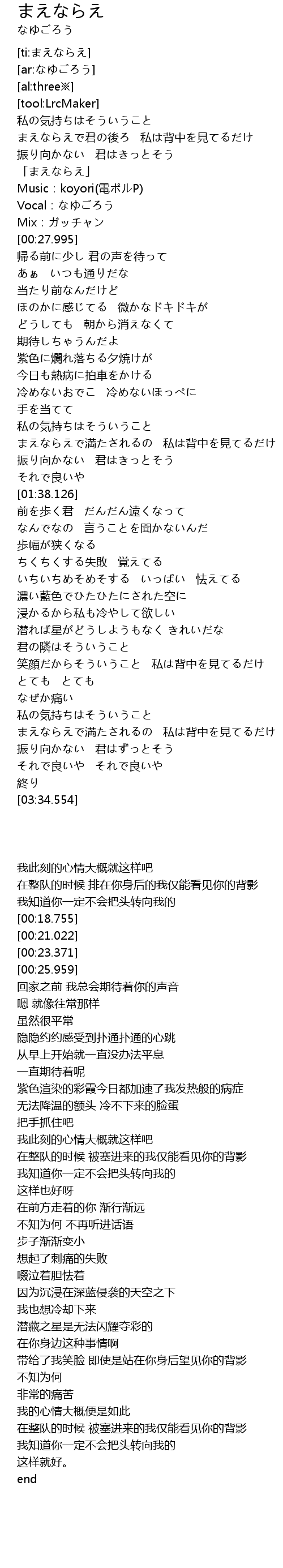 | [03:03.740] | まえならえで満たされるの 私は背中を見てるだけ |