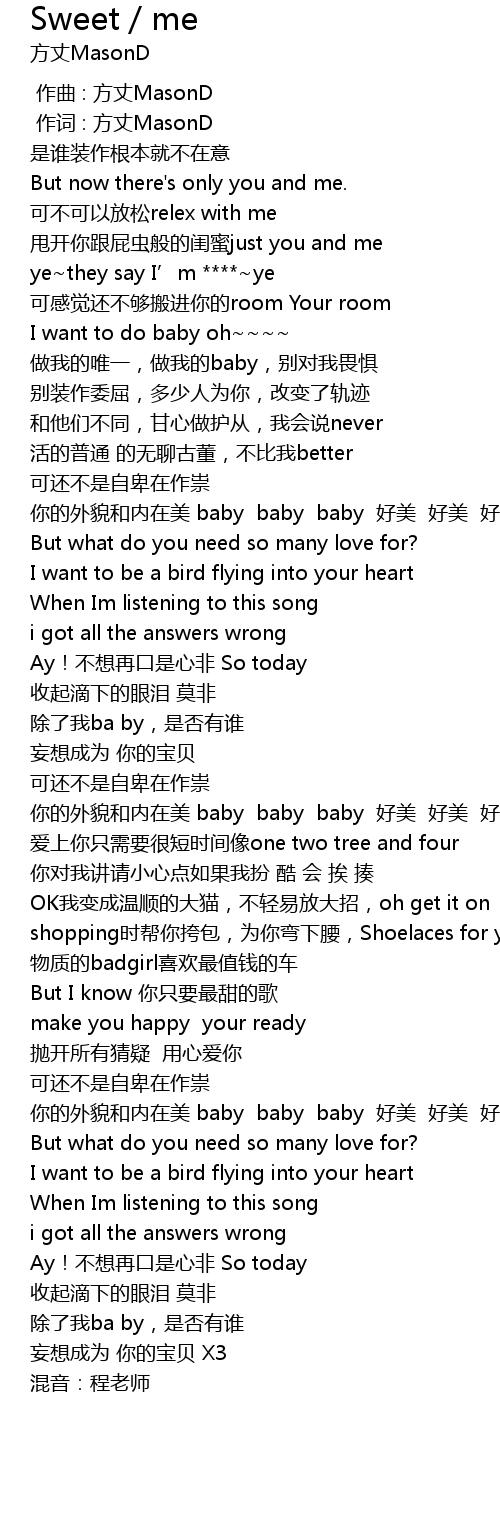 | [02:27.157] | But I know nǐ zhǐ yào zuì tián de gē |