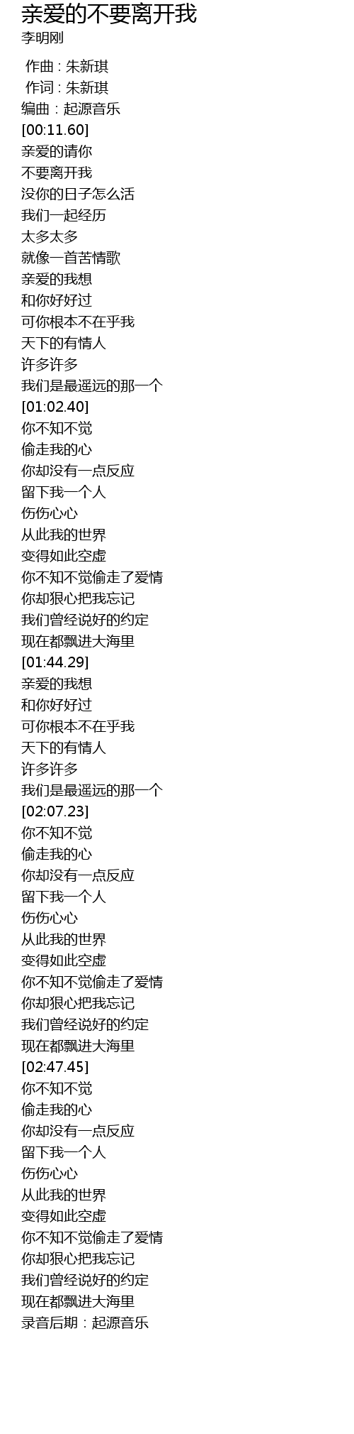| [02:17.37] | 留下我一个人 |