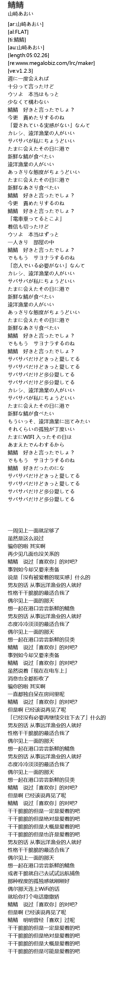 | [01:44.93] | 鯖鯖 好きと言ったでしょ? |