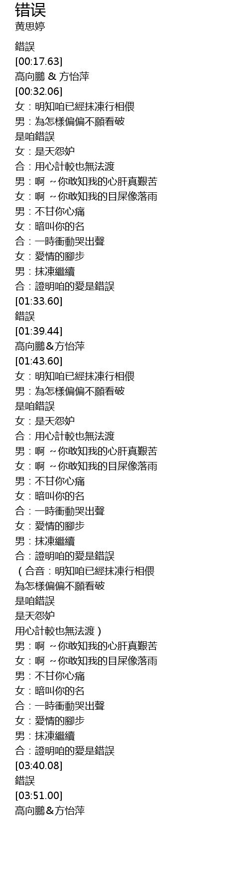 | [01:41.02] | 高向鵬&方怡萍 |