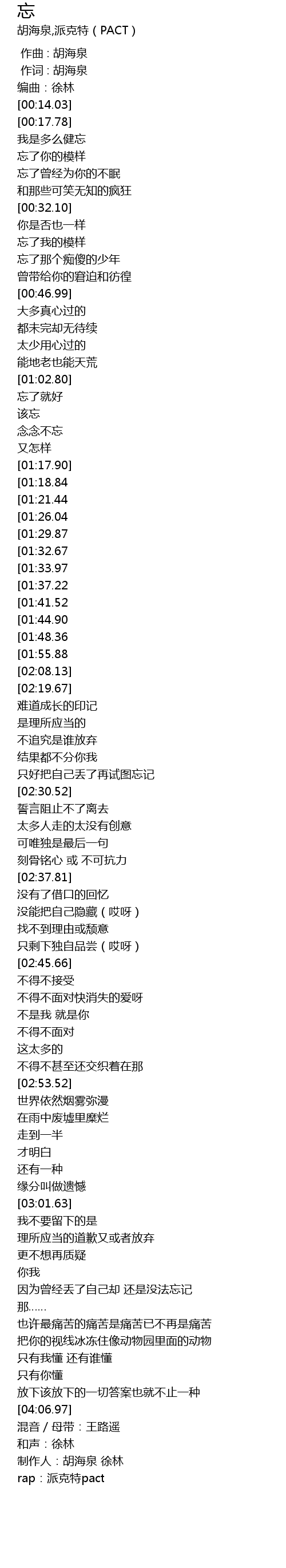 | [03:38.90][01:33.97] | 忘就忘了 |