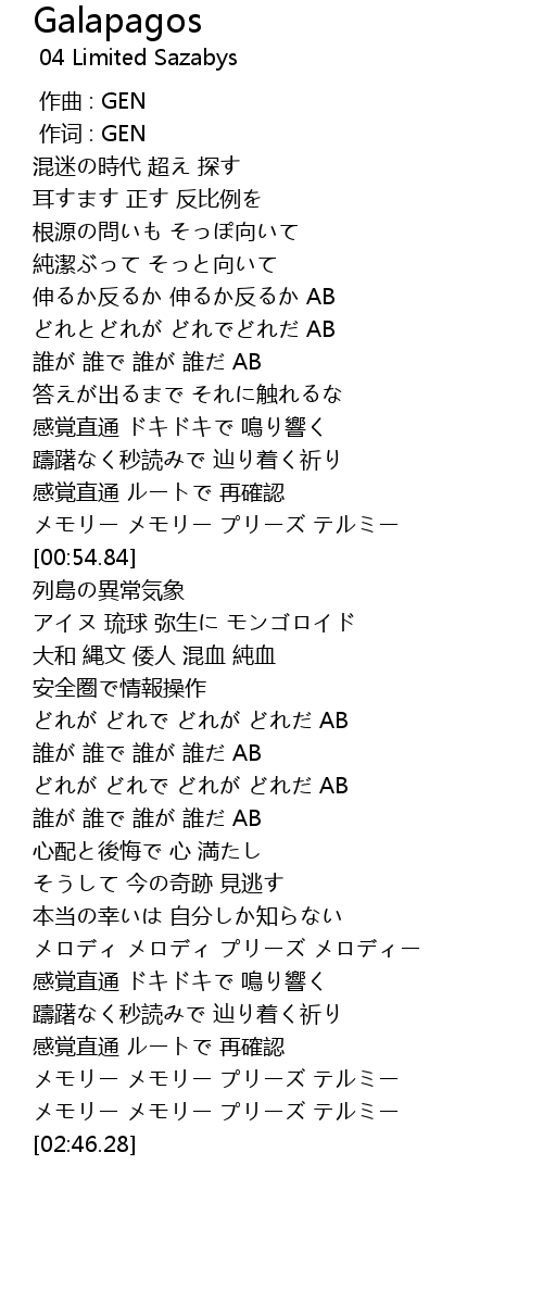 | [01:54.98] | 大和 縄文 倭人 混血 純血 |