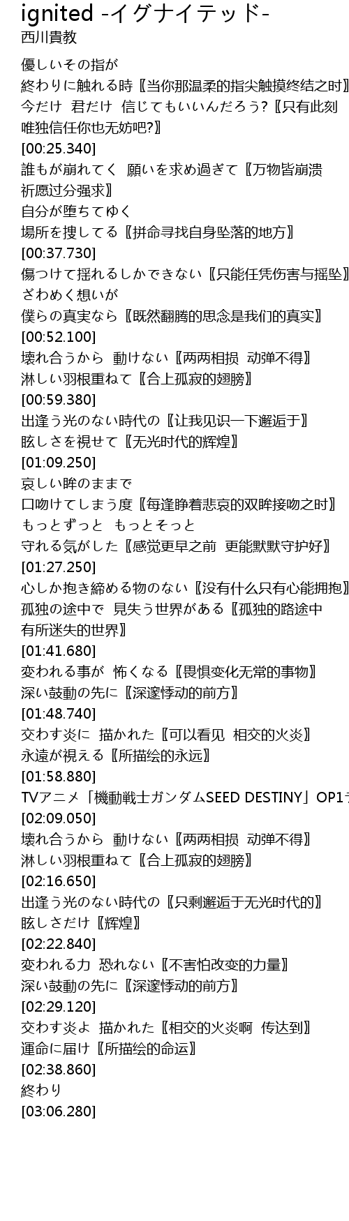 | [02:00.880] | TV ji dong zhan shi SEED DESTINY OP1 |