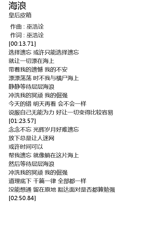| [00:00.000] | 作曲 : 巫浩诠 |