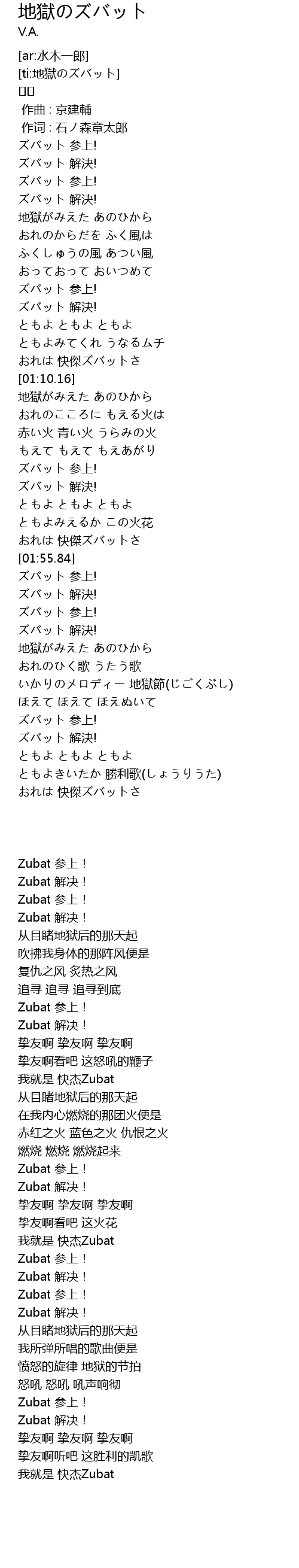 | [ti:地獄のズバット] | |