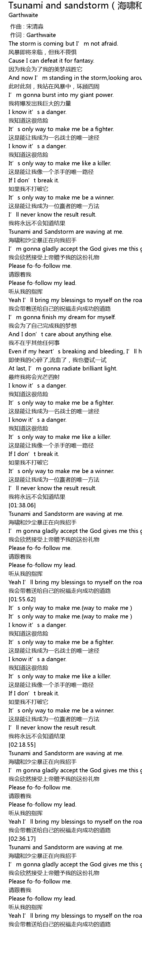 | [02:23.97] | 海啸和沙尘暴正在向我招手 |