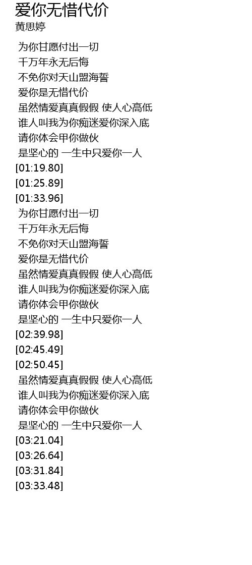 | [00:44.97] | 爱你是无惜代价 |