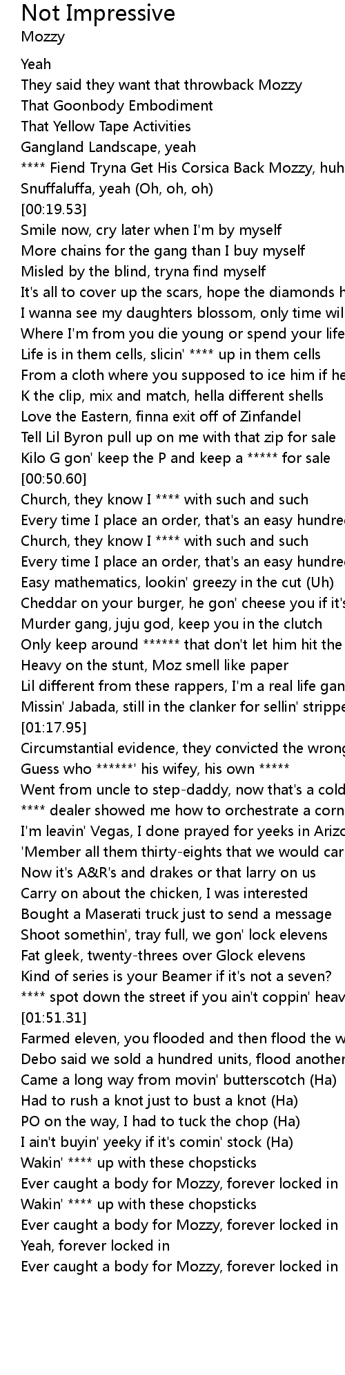 [02:19.29] Ever caught a body for Mozzy, forever locked in