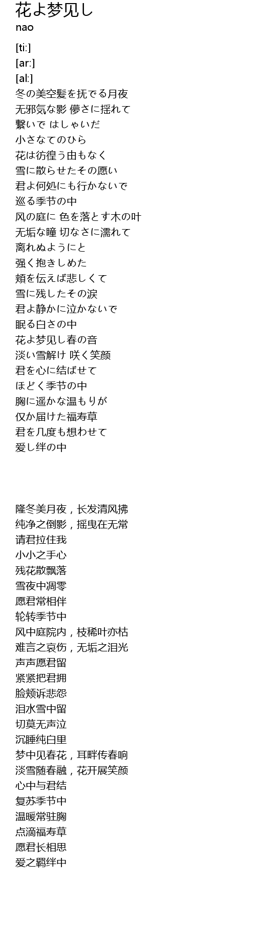 | [00:41.54] | 冬の美空髪を抚でる月夜 |
