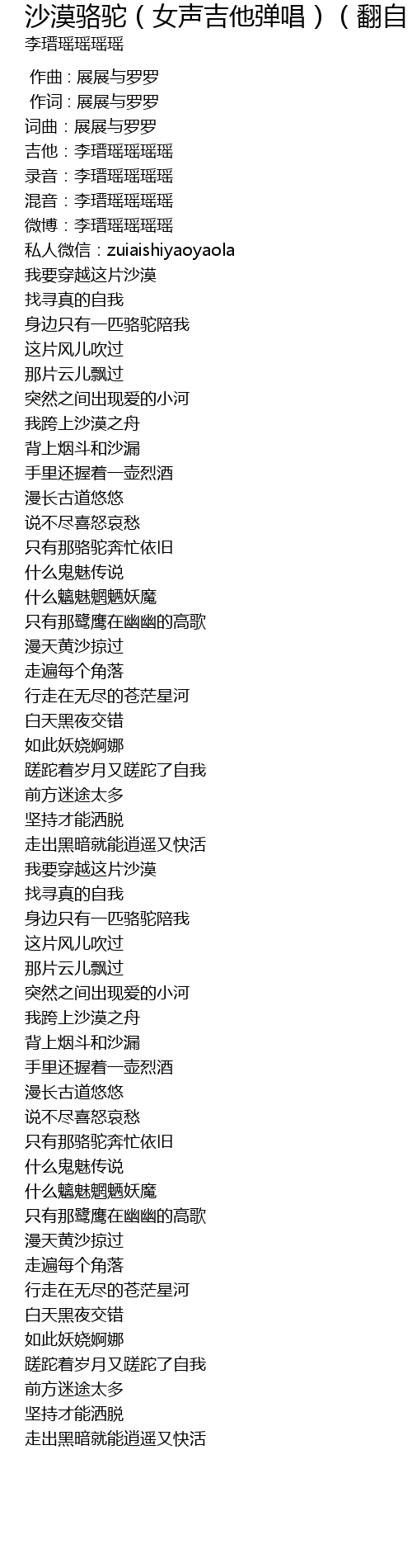 | Song | 沙漠骆驼(女声吉他弹唱)(翻自 展展与罗罗) |