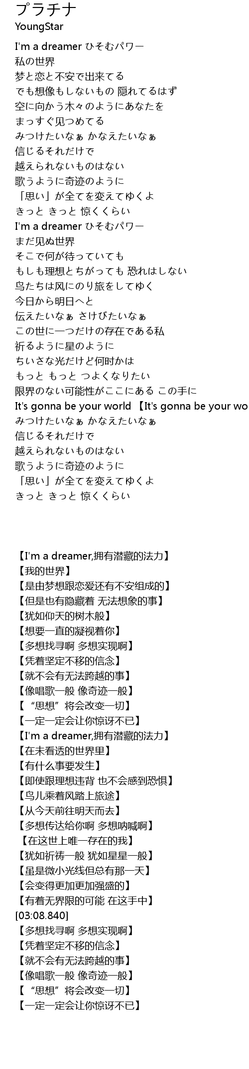 | [00:04.400] | I'm a dreamer ひそむパワー |