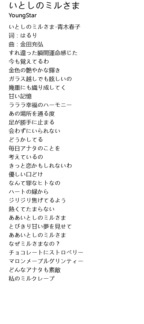 | [00:00.138] | いとしのミルさま-青木春子 |