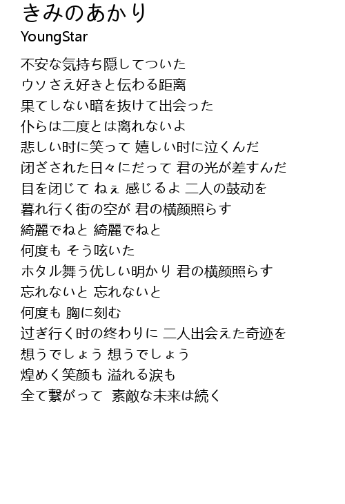 | [00:53.81] | 闭ざされた日々にだって 君の光が差すんだ |