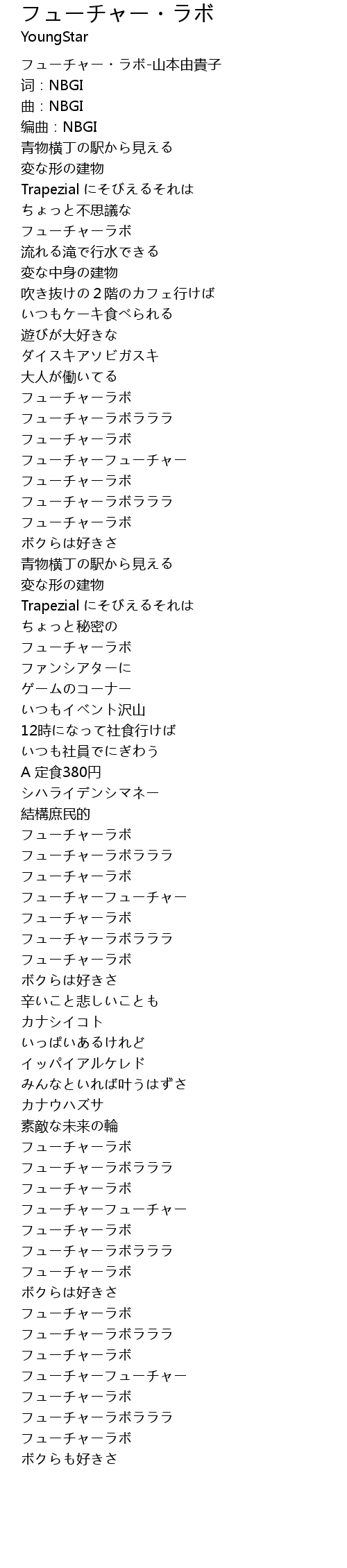 | Song | フューチャー・ラボ |