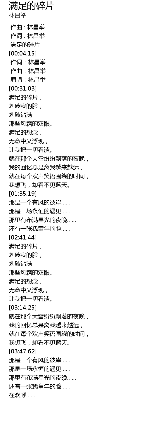 | [00:01.000] | zuò cí : lín chāng jǔ |