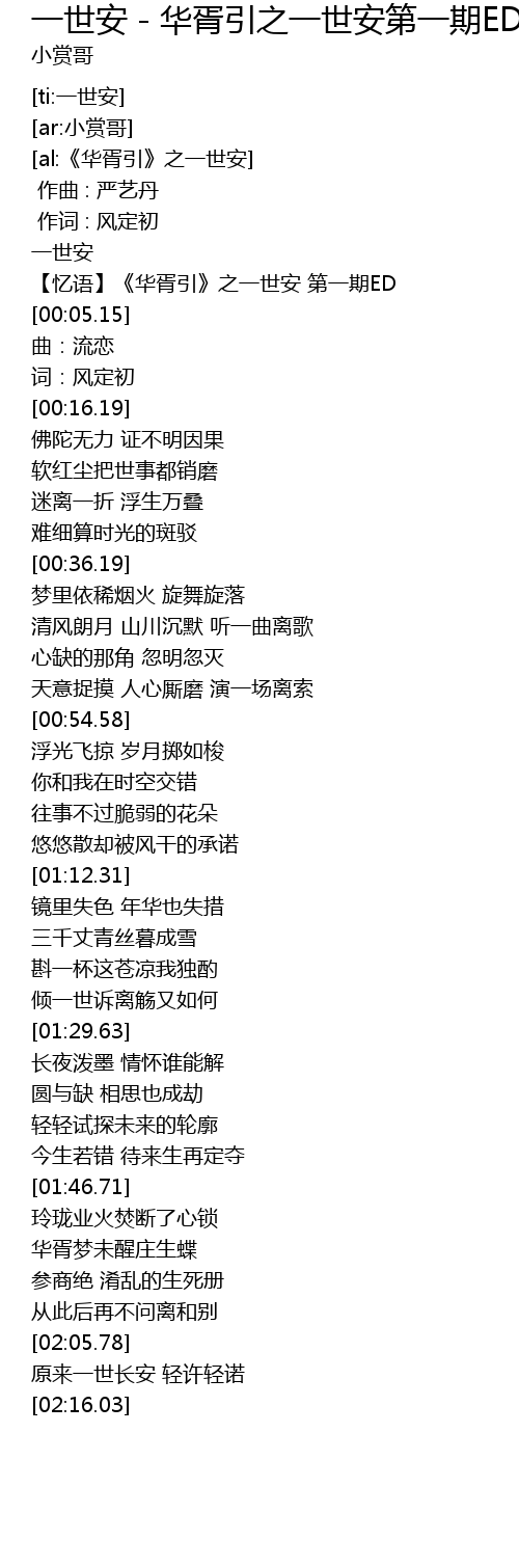 | [02:05.81] | 原来一世长安 轻许轻诺 |
