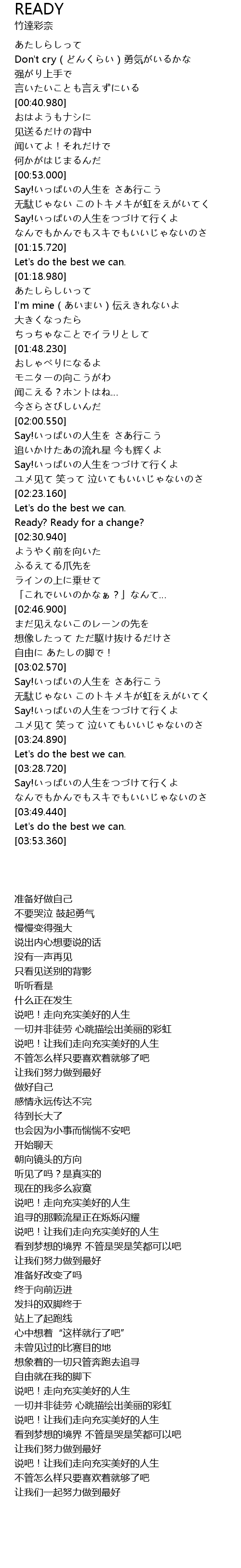 | [03:38.680] | Say!いっぱいの人生をつづけて行くよ |
