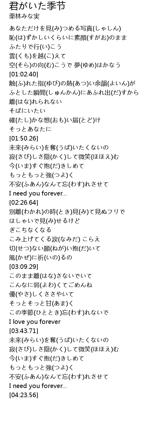 | [03:32.39] | この季節(ひととき)忘(わす)れないで |