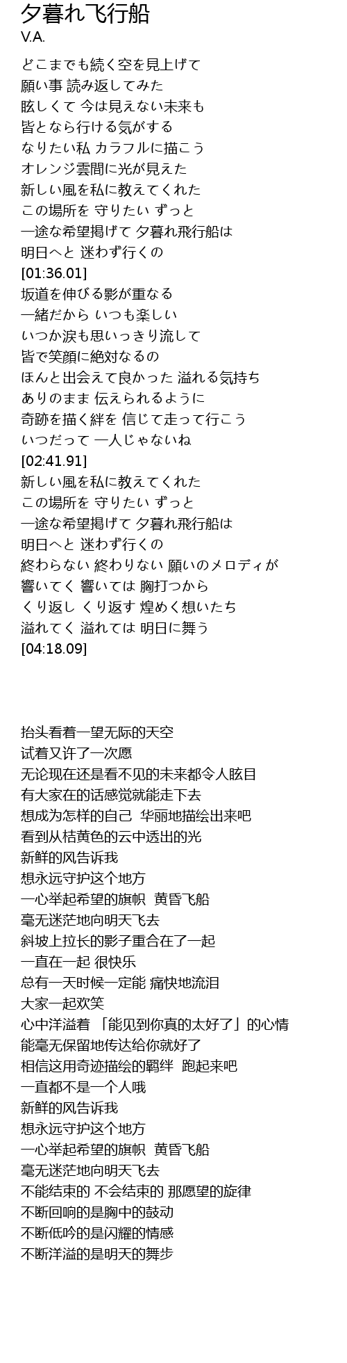 | [03:29.75] | 一途な希望掲げて 夕暮れ飛行船は |