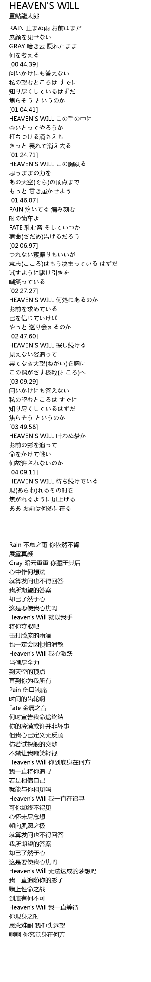 | [04:09.33] | HEAVEN'S WILL 待ち続けでいる |