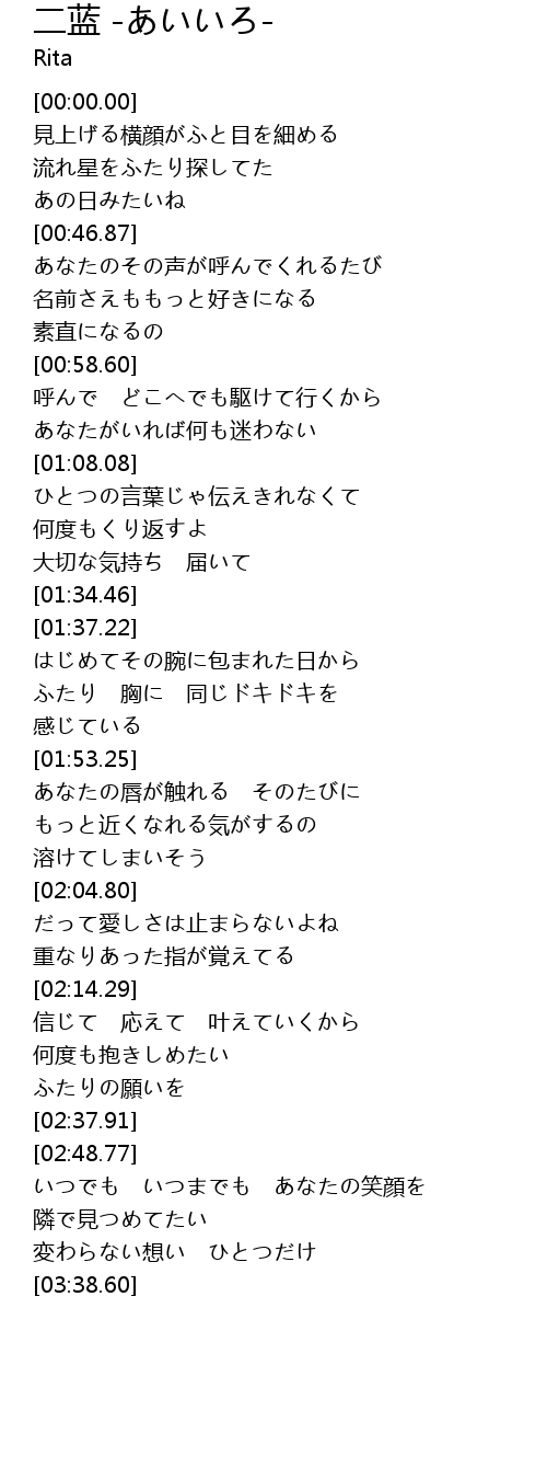 | [02:31.53] | ふたりの願いを |
