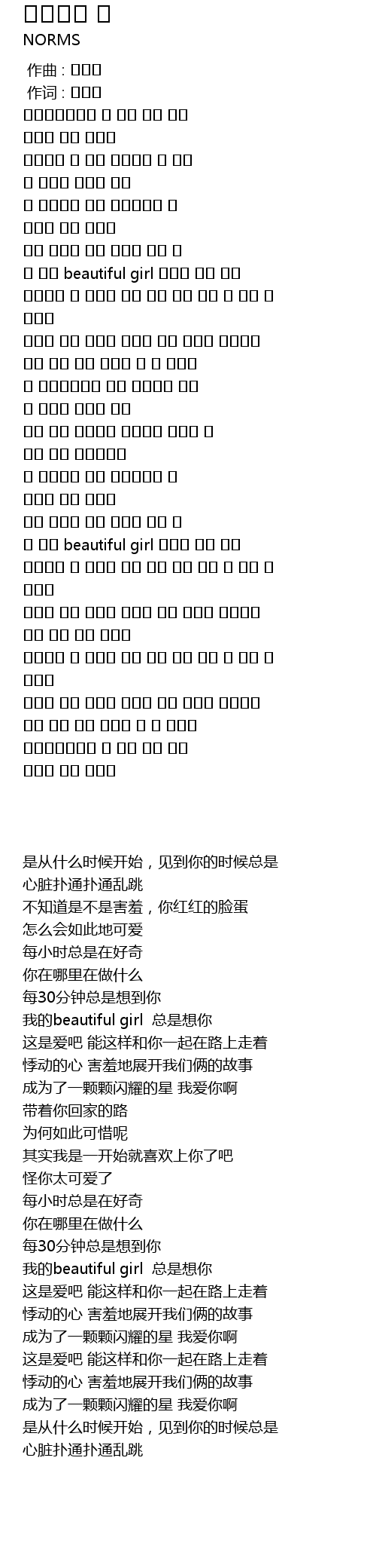 넌 나의 beautiful girl 자꾸만 보고 싶어 |