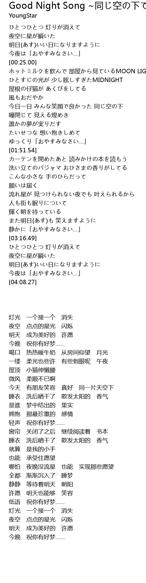| [00:20.60] | 今夜は「おやすみなさい…」 |