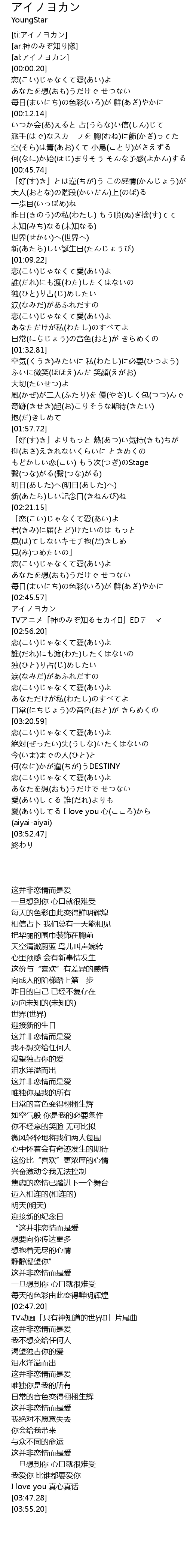 | [02:47.20] | アイノヨカン |