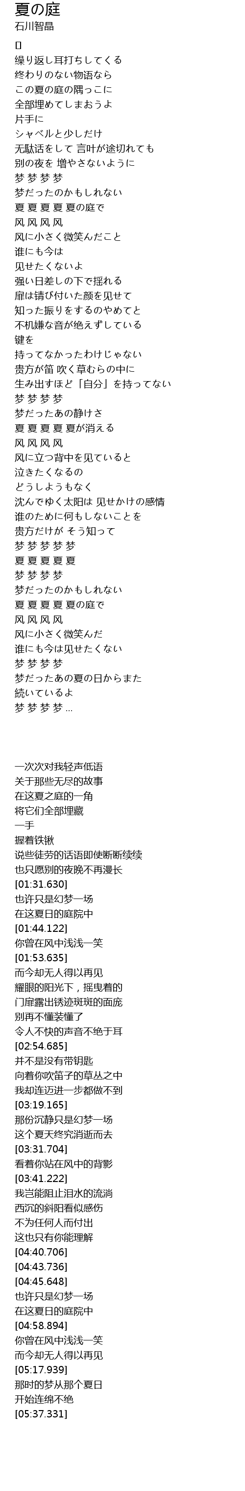 | [01:38.724] | 夏 夏 夏 夏 夏の庭で |