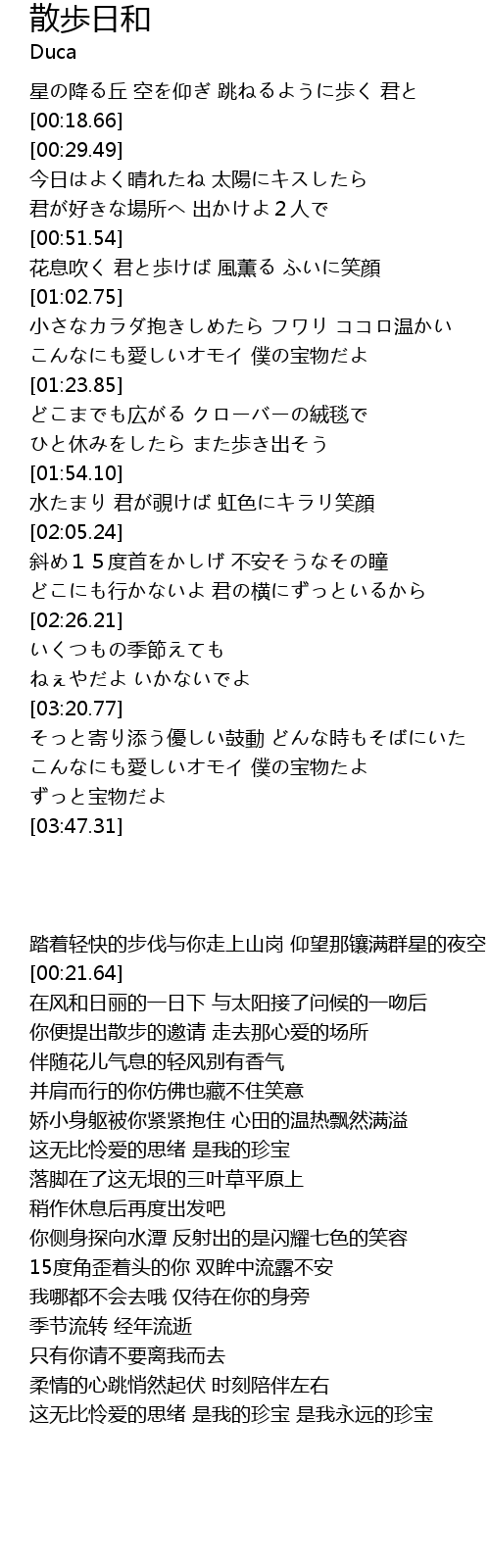 | [00:41.36] | 君が好きな場所へ 出かけよ2人で |