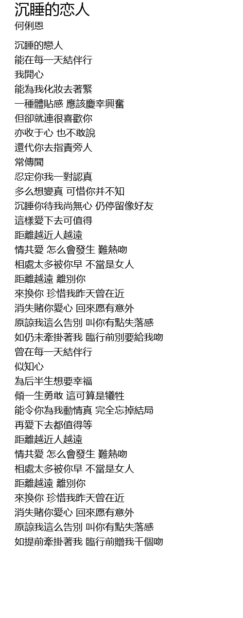 | [01:06.41] | 沉睡你待我尚無心 仍停留像好友 |