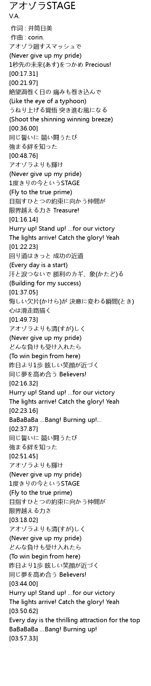| [02:16.53] | Hurry up! Stand up! for our victory |