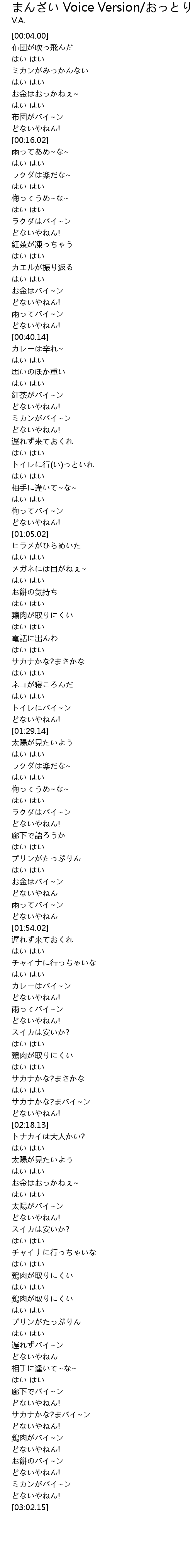 | Song | まんざい Voice Version/おっとりーず(カースケ・コースケ) |