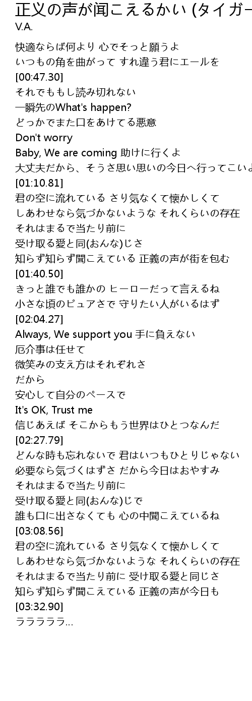 | [01:28.52] | 知らず知らず聞こえている 正義の声が街を包む |