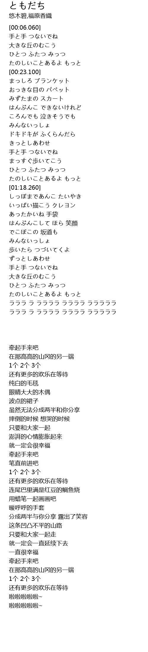 ラララ ラ ララララ ララララ ラララララ |