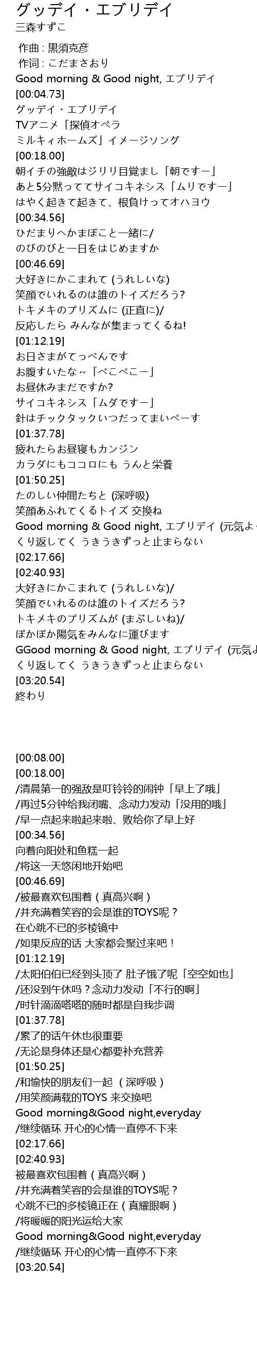 | [00:00.00] | Good morning & Good night, エブリデイ |