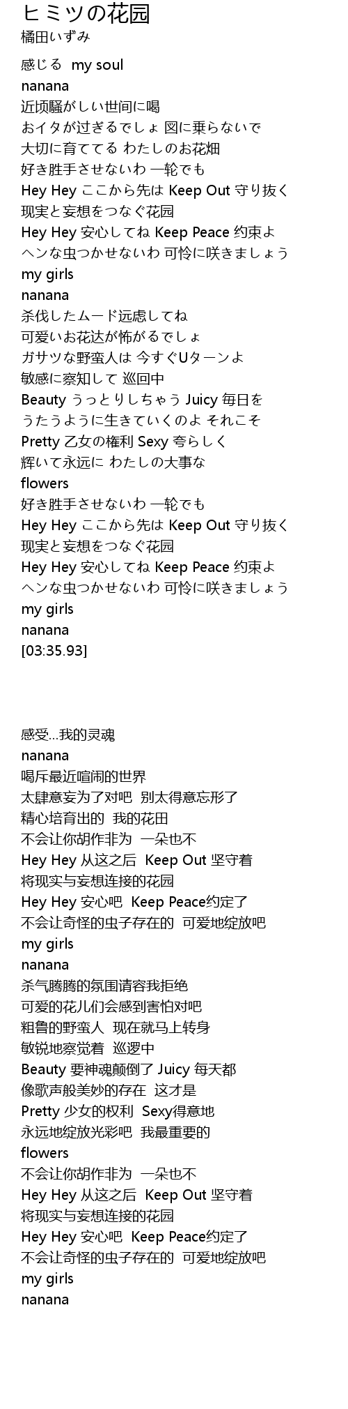 | [00:37.14] | 大切に育ててる わたしのお花畑 |