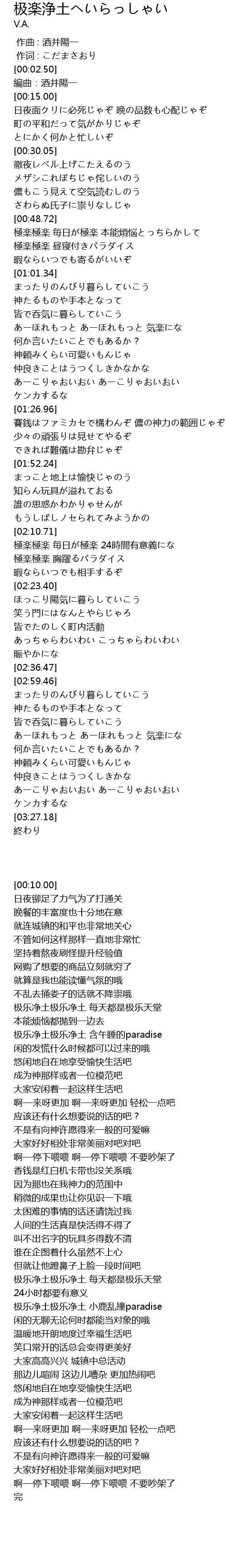| [00:49.06] | 極楽極楽 毎日が極楽 本能煩悩とっちらかして |