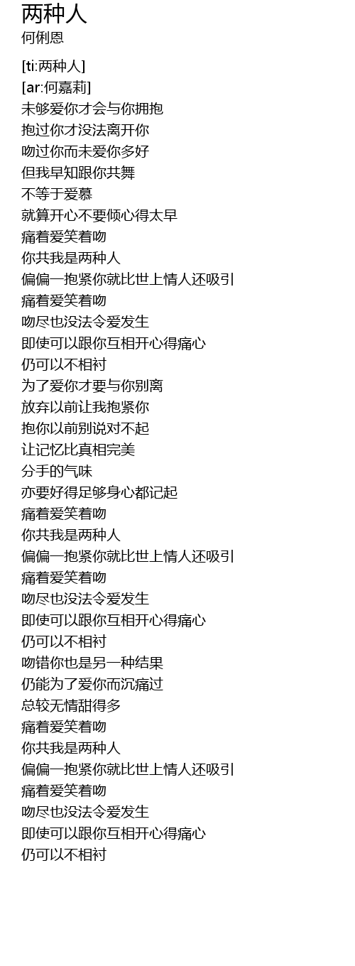 | [02:33.177] | nǐ gòng wǒ shì liǎng zhǒng rén |