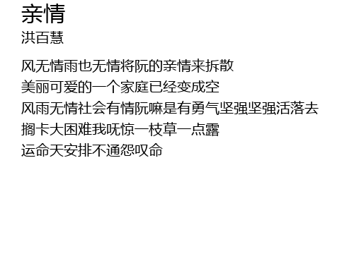 | 风无情雨也无情将阮的亲情来拆散 | |