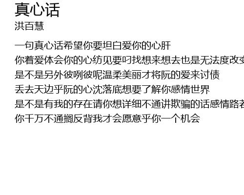 | 一句真心话希望你要坦白爱你的心肝 | |
