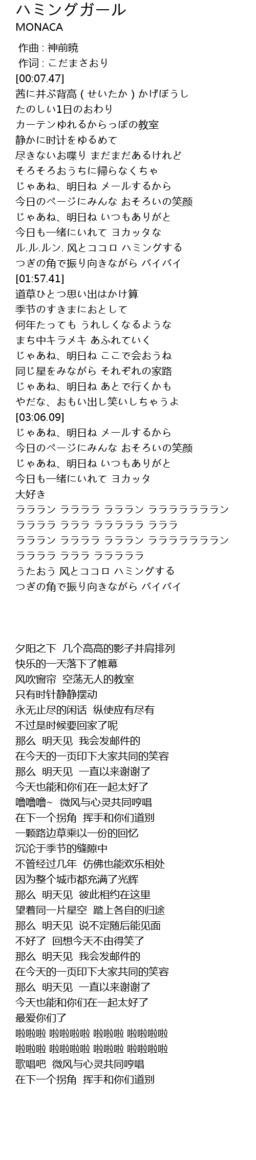| [04:05.46] | ラララン ララララ ラララン ラララララララン ララララ ラララ ラララララ ラララ |